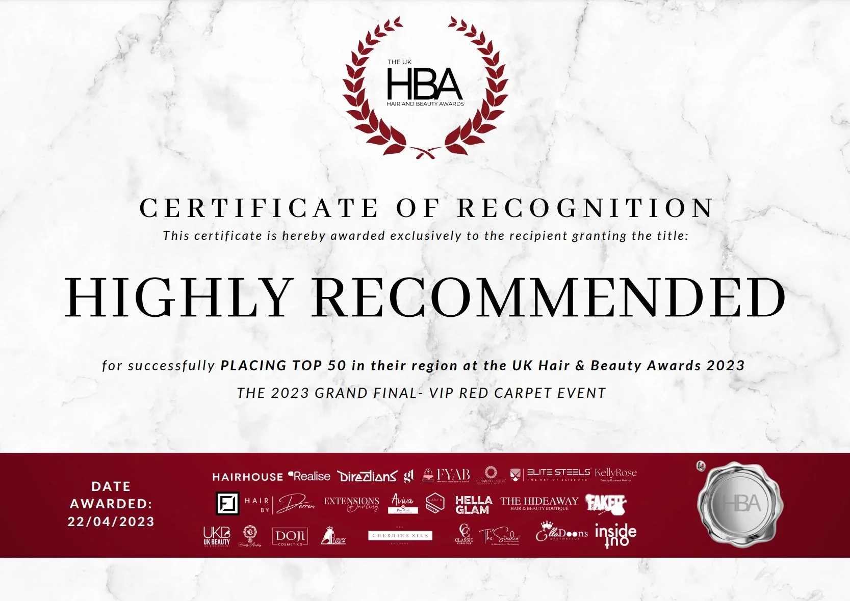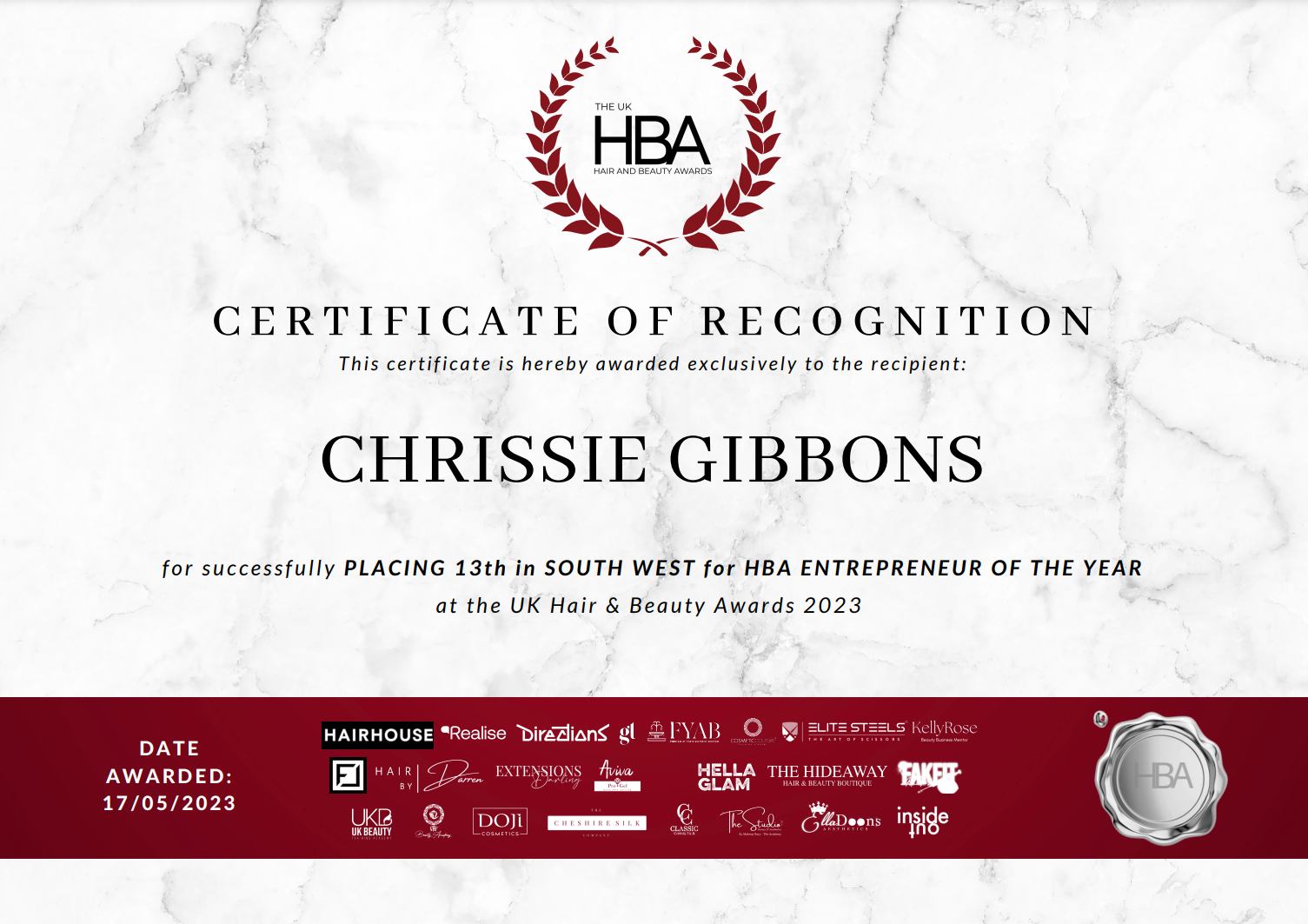 I am award winning! Most recently I received an accolade for HBA Best Home salon, Highly recommended 2025